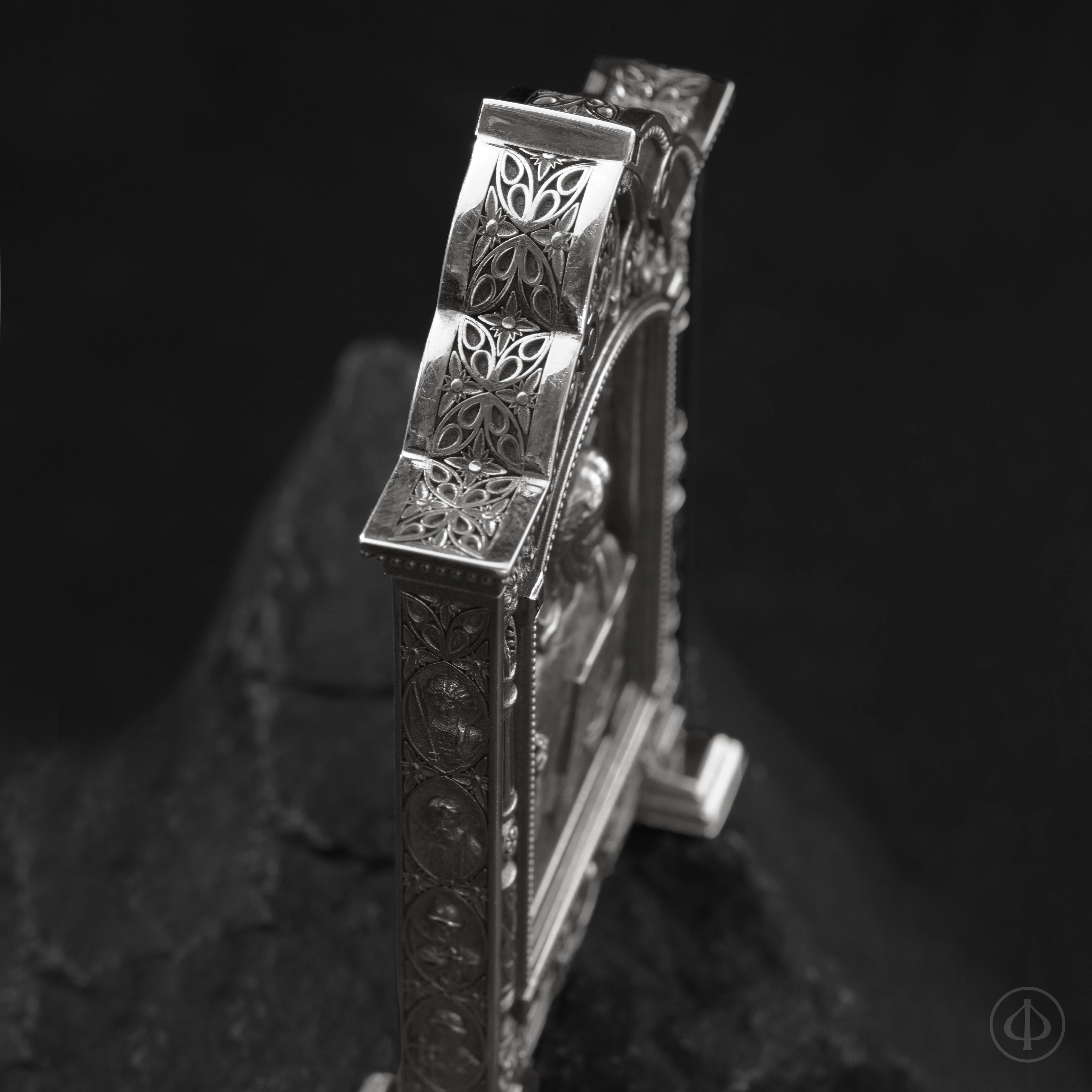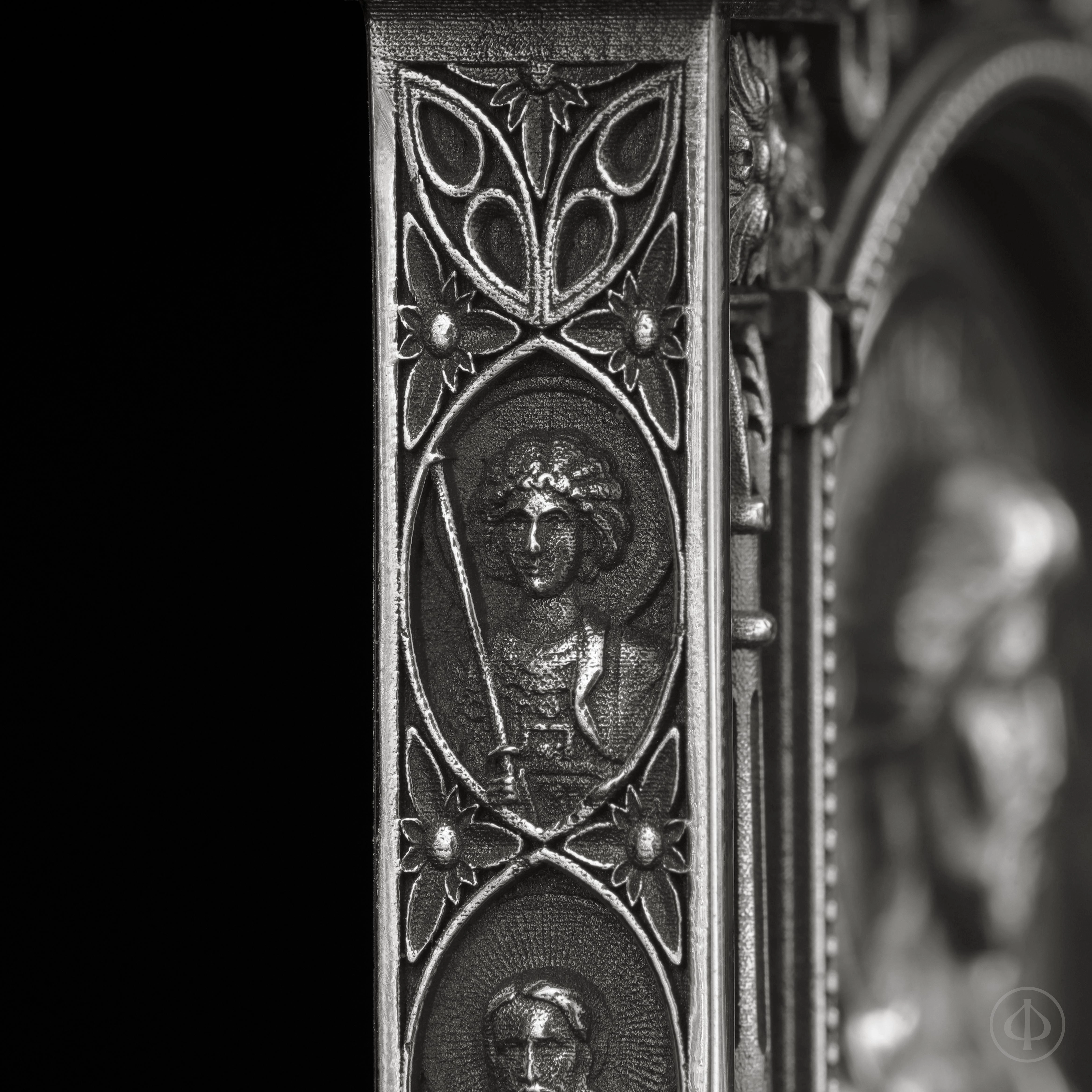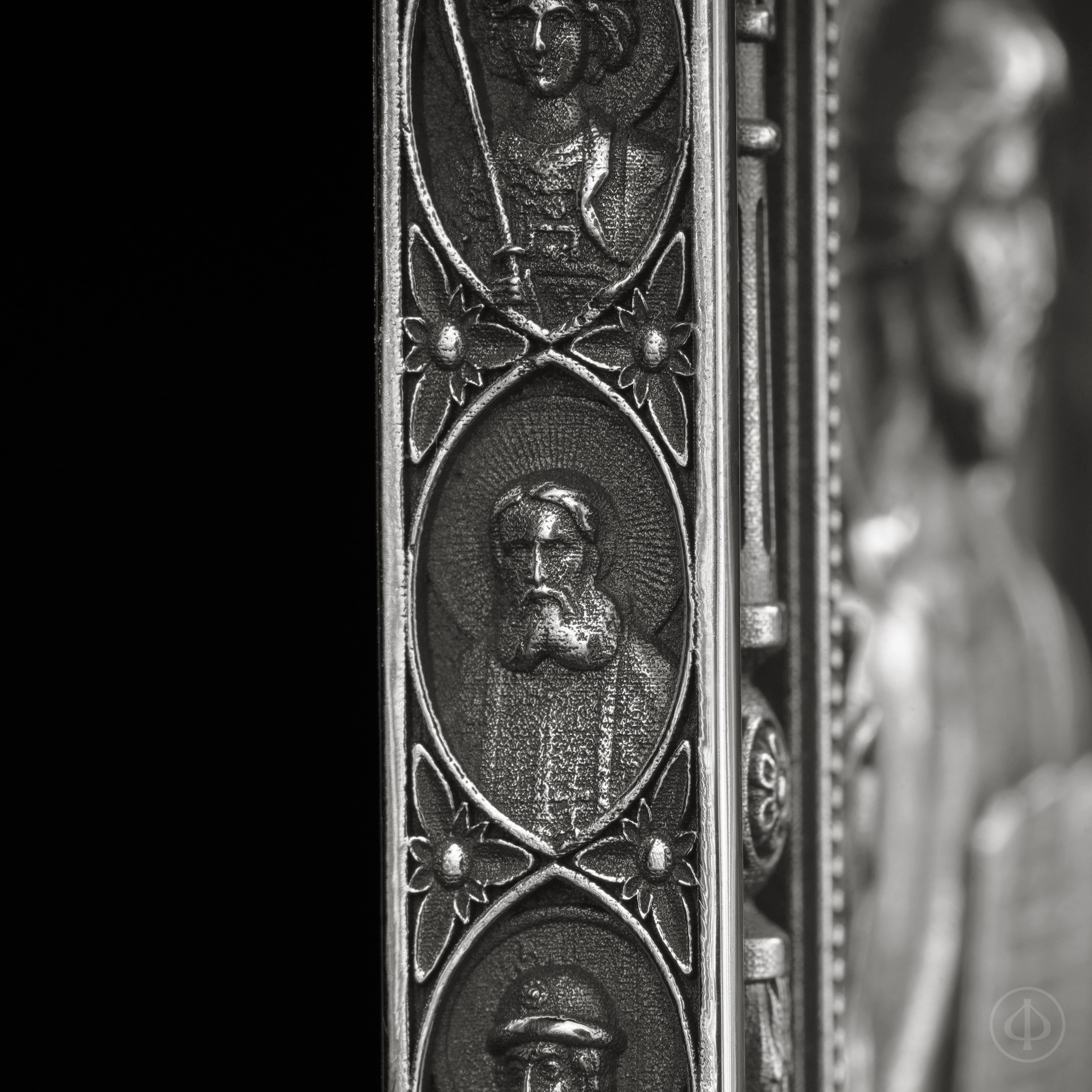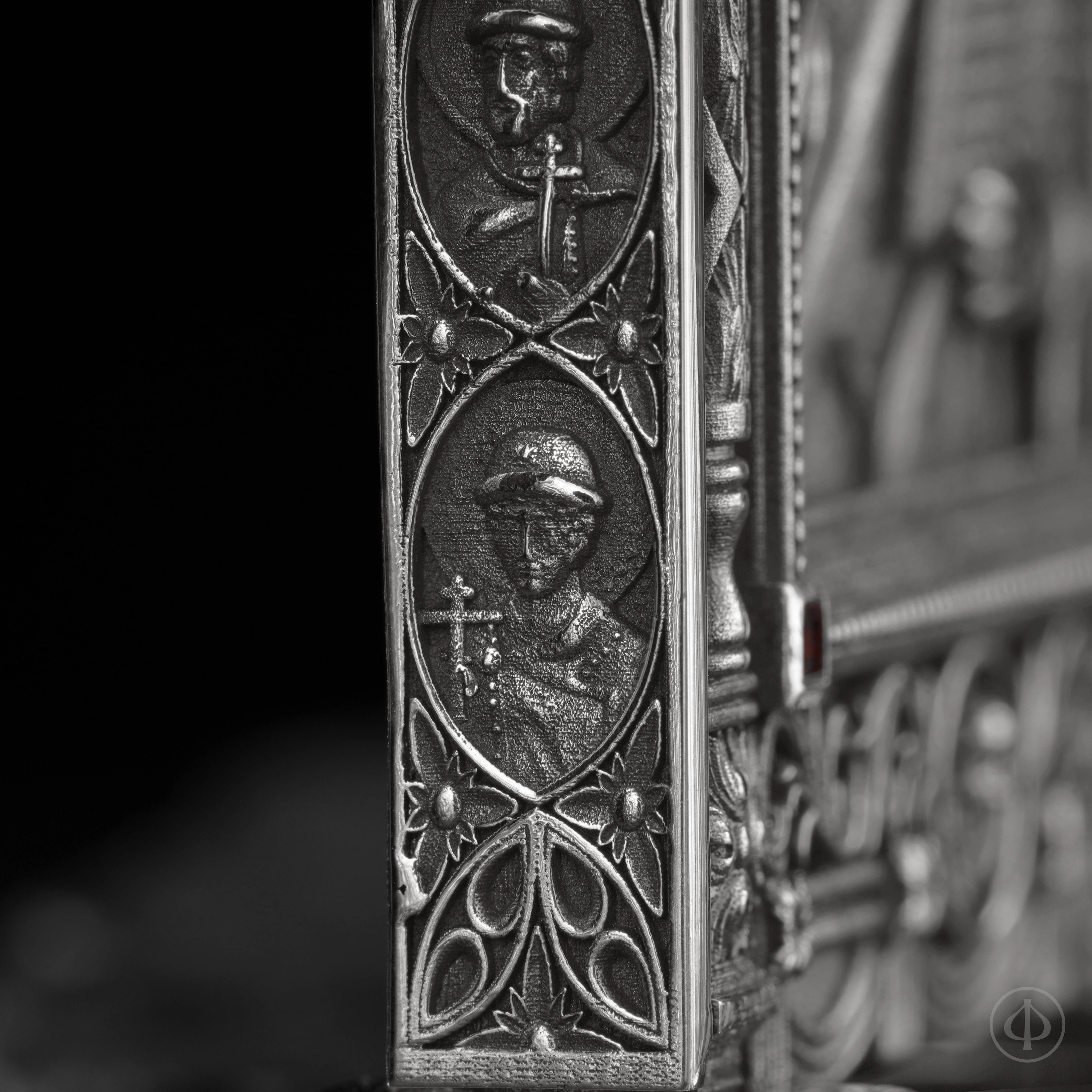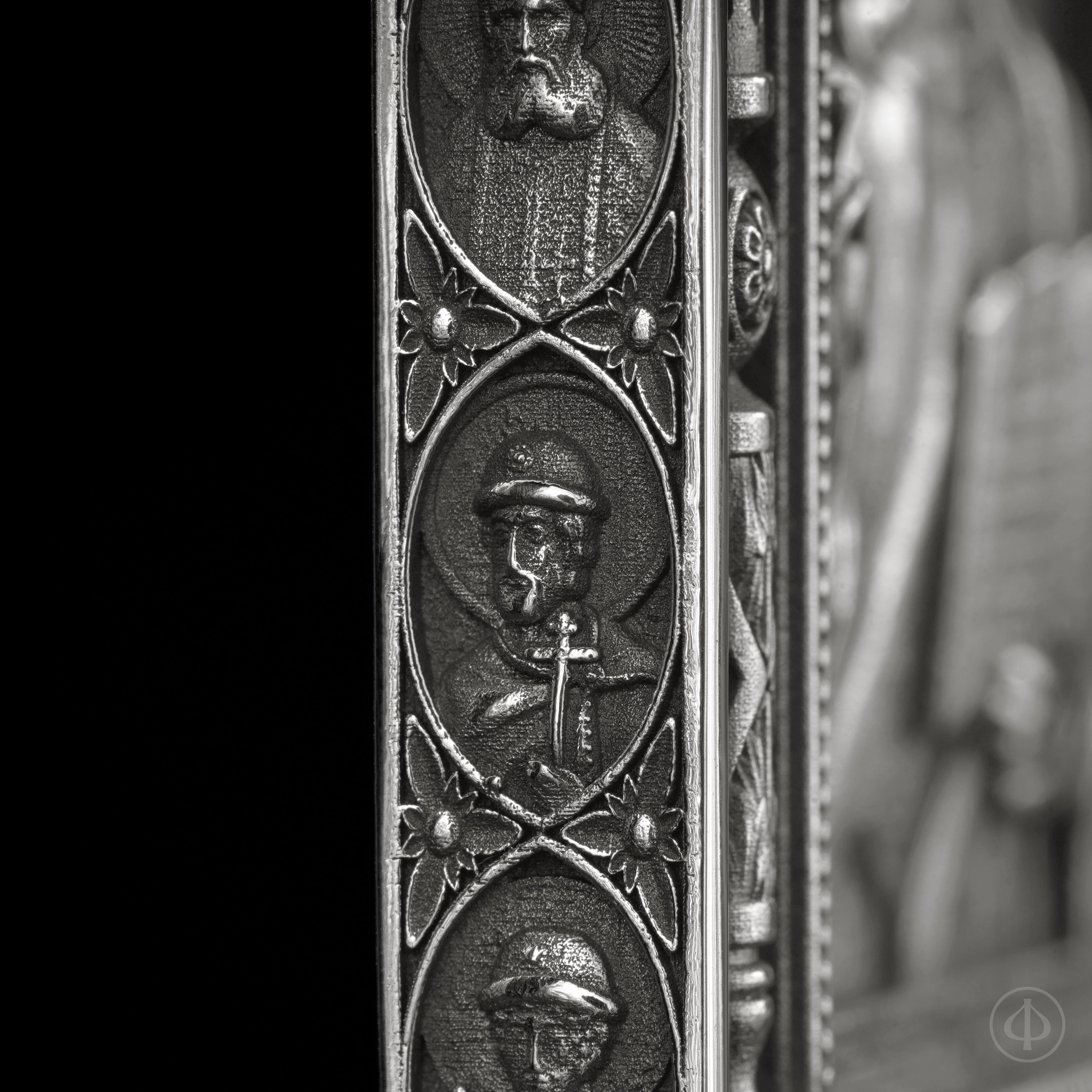 Настольная икона "Господь Вседержитель" с шестью вставками огранкой квадрат из драгоценных и полудрагоценных камней.