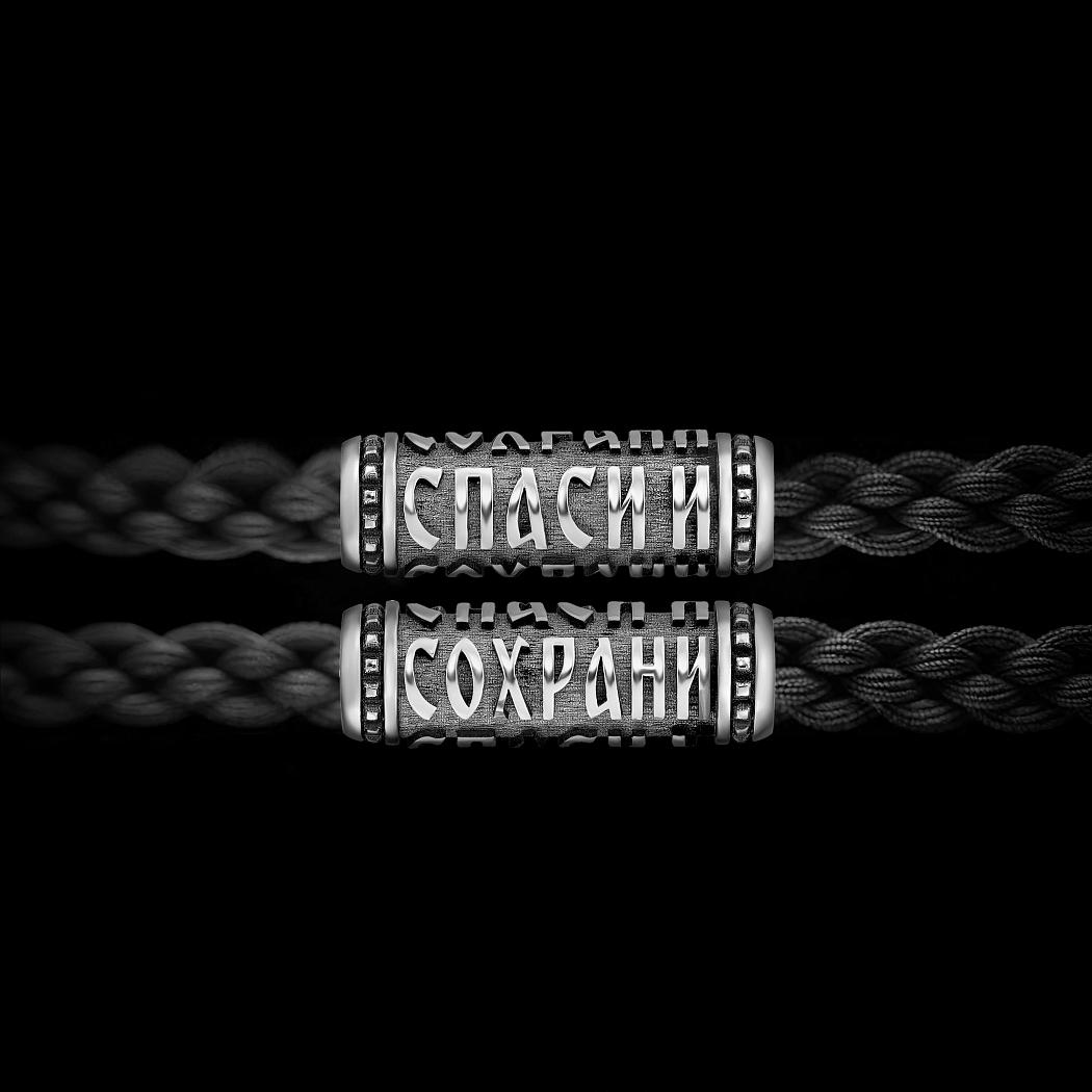 Вставка-бусина "Спаси и сохрани" из серебра на шнур 8 мм